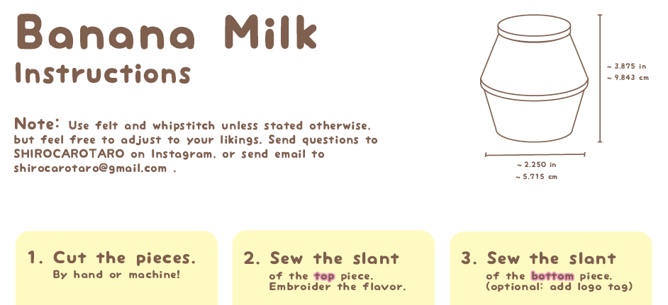 Download the Banana Milk Felt Plush Pattern made by shirocarotaro! Includes template and instructions!