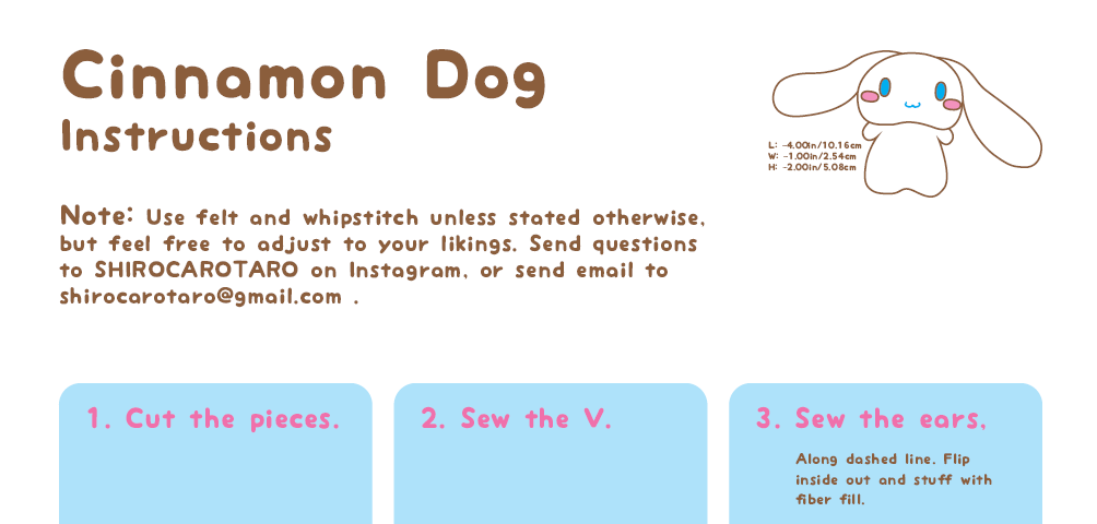 This is a fan-made design, not affiliated with any official brand. This plush template is meant for educational purposes! Do not reproduce, freely distribute, sell this pattern, nor sell the modified versions of this pattern. Please credit with "Pattern by SHIROCAROTARO". If you modified the pattern, give credit with "Modified from SHIROCAROTARO's template".